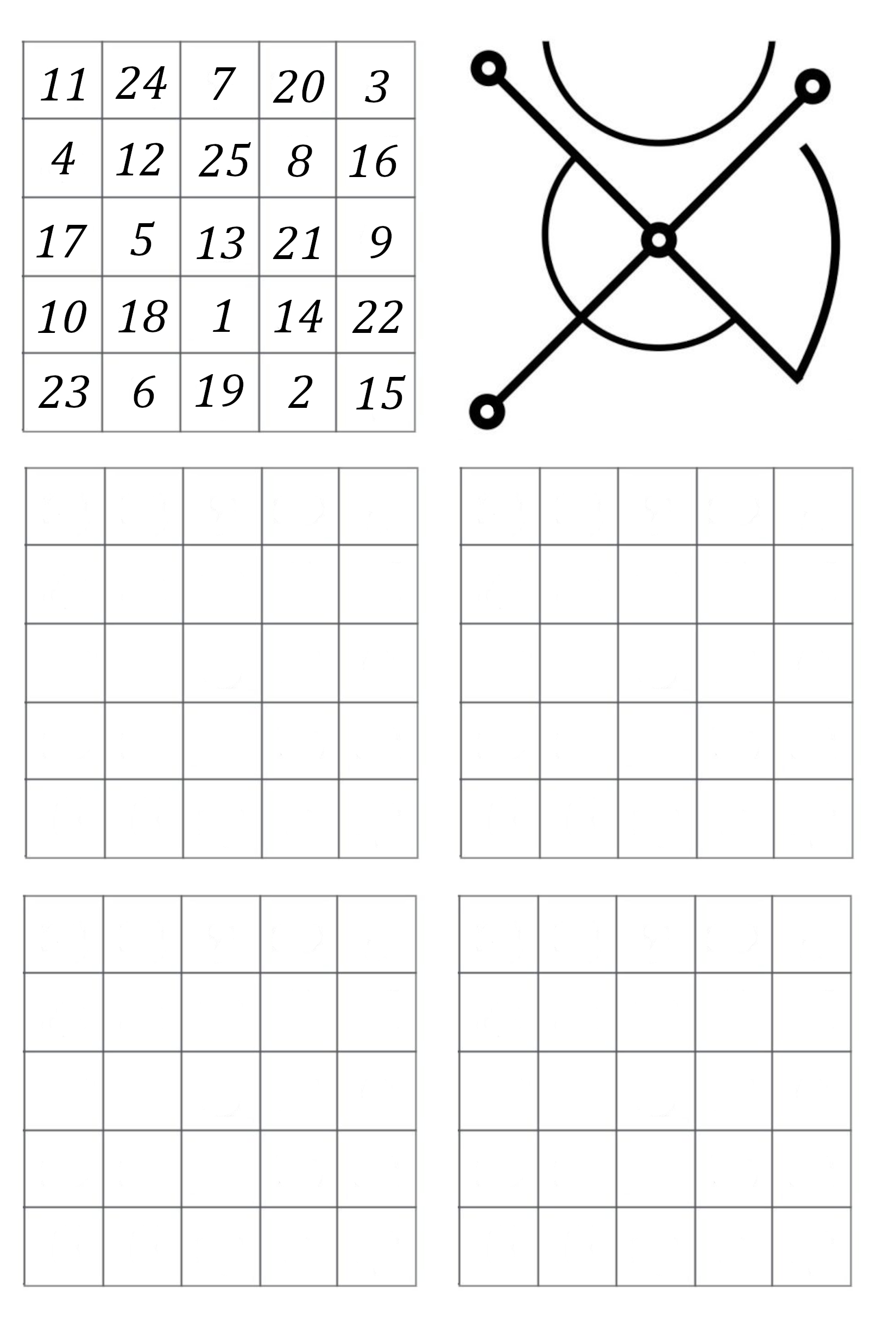 Numerical Keys: 5, 25 (5×5), 65 (sum of any row, column, or diagonal), 325 (sum of numbers 1 thru 25)
